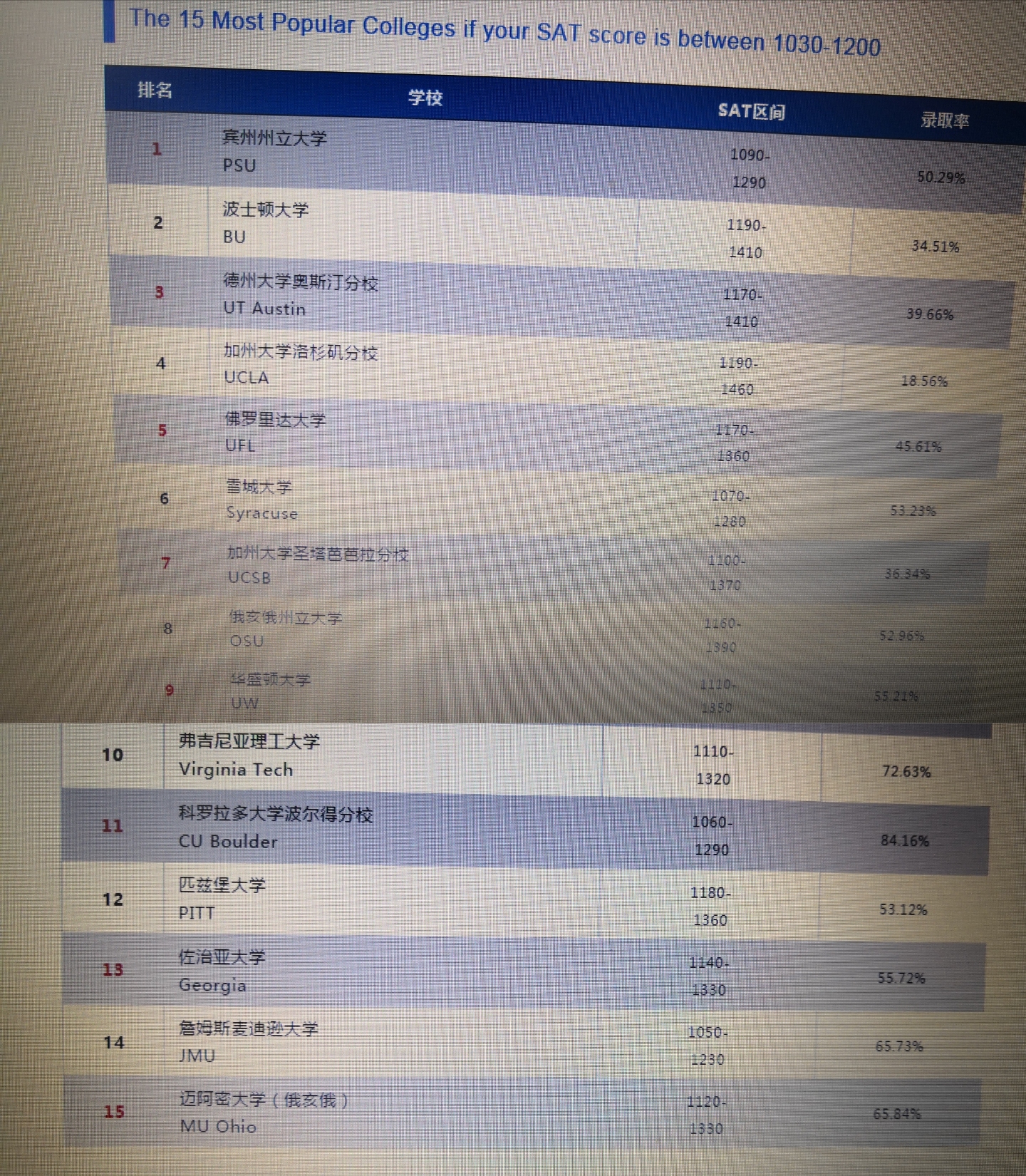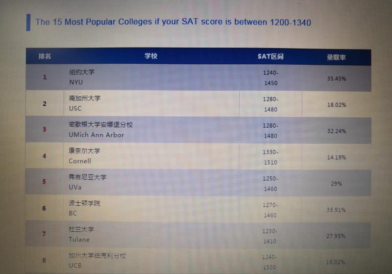 我们大家都知道,SAT的分数是美国大学录取学生时参考的最重要内容之一,而不同的SAT分数也决定了学生们的命运。想进名校,首先就要有高SAT分数,还要有SAT2,今天咱们来说说SAT,那么不同分数的同学们都最偏爱选哪些学校呢?徐老师就为大家列出来,以便帮助大家更好的选校!