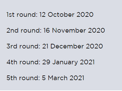 香港大学商科专业按照以下时间批次分为五轮截止日期,第三轮申请截止时间为2021年2月3日。