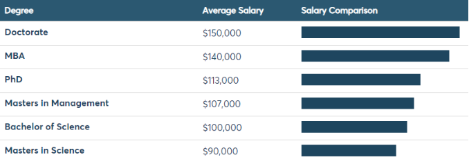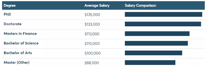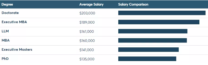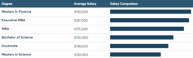 杜克大学的最高薪学位是博士学位,校友的平均薪资为15万美元。其中,薪水最低的毕业生是那些拥有其他硕士学位的人,平均年薪约为85,000美元。