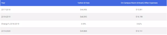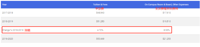 2019-2020研究生平均成本:学费约49,868美元、其他费用约16,741美元