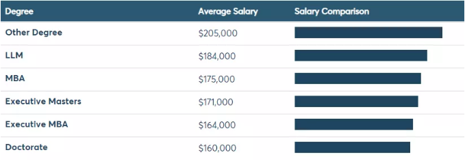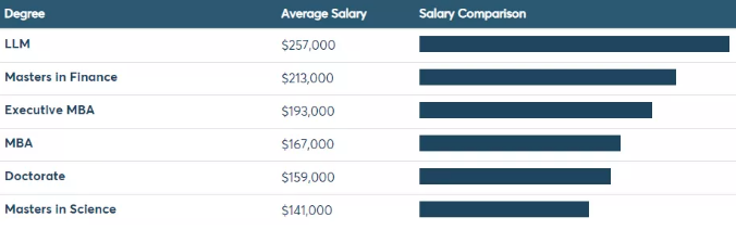 芝加哥大学最高薪学位是法学硕士,校友的平均薪资为257,000美元。学校毕业生中,薪水最低的是那些拥有其他硕士学位的人,年薪约为70,000美元。