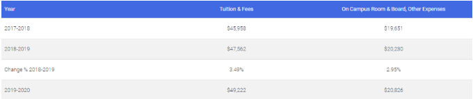 2019-2020研究生平均成本:学费约49,222美元、其他费用约20,826美元