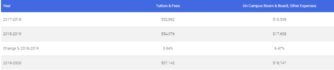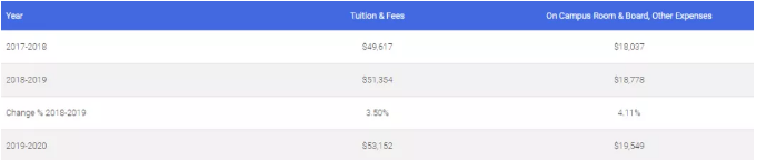 2019-2020研究生平均成本:学费约53,152美元、其他费用约19,549美元