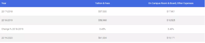 2019-2020研究生平均成本:学费约61,004美元、其他费用约19,171美元