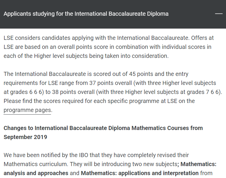 LSE接受IB成绩申请,录取会基于总分与HL科目的单科成绩来衡量。