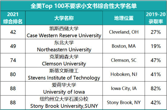 除了凯斯西储大学和东北大学外,其他几所不要求小文书的综合性大学亦各有千秋。