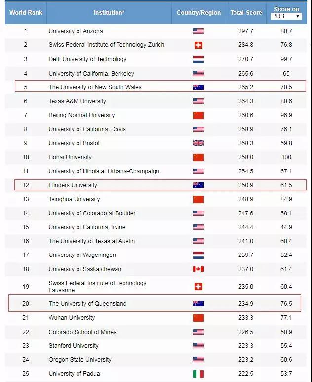 在世界前25名中,澳洲大学占3所,分别是新南威尔士大学、弗林德斯大学和昆士兰大学。