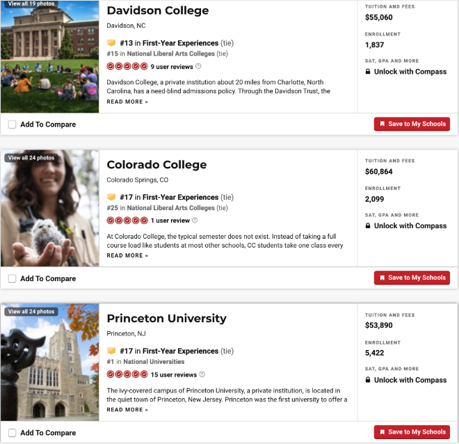 一所学校必须获得10个或更多个提名才能出现在这个榜单上。也就是说,上榜的学校,都是被美国那批最懂教育的人所认可的、是教职员工和管理人员致力于增强学生大学体验的学校!