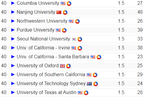 3、在top5席位中,中国院校占据2席,除了清华大学外,北京大学排名第5,较去年上升9位,首次进入前5。