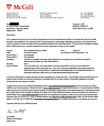 Ø 麦吉尔大学 McGill 普高学生直录要求:
