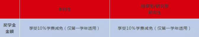 授予对象: 2018年 6月30日 前持大学学位课程 无条件录取通知书 并且在 6月30日 前 缴清 90%学费 的全日制学位国际新生。