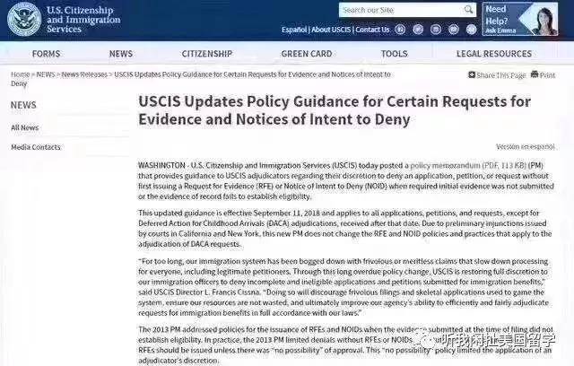 新规: 2018年9月11日起,美国移民局收到的所有移民/非移民申请,以及身份转换请求,如果一开始提供的材料不符合要求,或者没有提交全部的证明文件,移民官可以直接拒绝,不用事先寄发补件(RFE)或否决意向(NOID)通知书 。