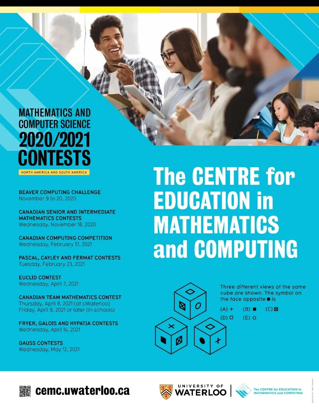 是加拿大滑铁卢大学(University of Waterloo)的数学学院为全球高中生举办的数学竞赛,是加拿大最具认可度的数学竞赛,含金量极高,对以后申请以数学和计算机著称的滑铁卢大学和该大学的奖学金很有帮助。