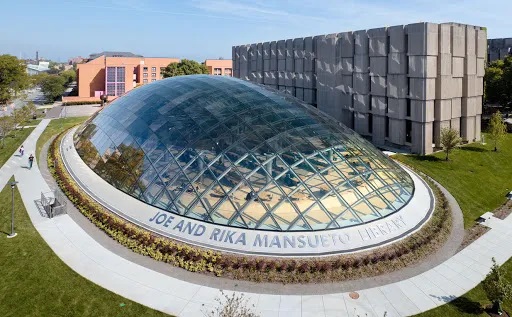 Mansueto Library是芝加哥大学最新的图书馆,于2011年完工,藏书350万册,在高密度封闭书架上方设有玻璃圆顶阅览室,从外面看像一颗宝石,图书馆主体建筑藏于地下,深达五层。 图书馆拥有自动检索系统,5分钟内机器人就能将你要的书籍找出来。 馆内收藏第一版 Chopin (1830-1880)。