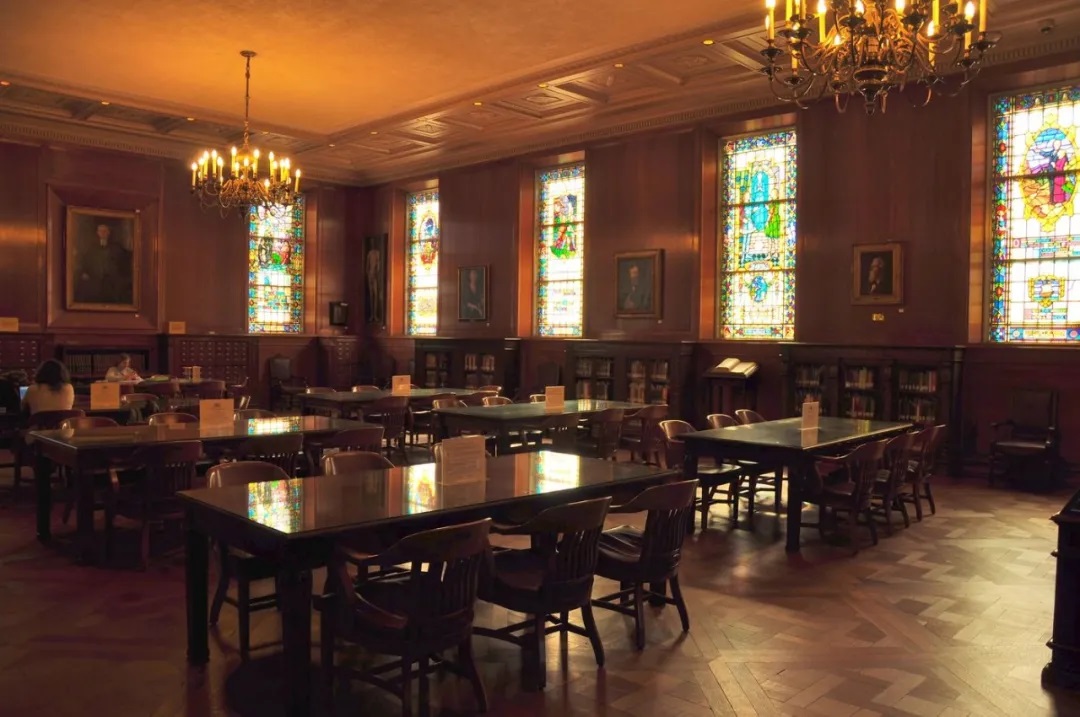 其中最大规模的是Green Library,共有七层,分东区和西区,藏书400万册,里面收藏有第一版 King James Bible。