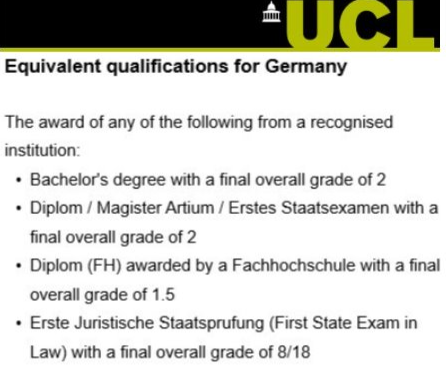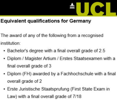 UCL硕士成绩: 2:2学位; 德国成绩要求: