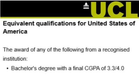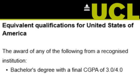 UCL硕士成绩:2:2学位; 美国本科成绩:CGPA 3.0/4.0;
