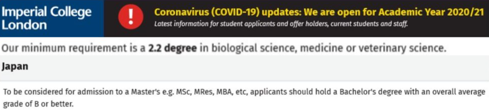 IC硕士成绩:2:2学位; 日本本科成绩:grae of B+;