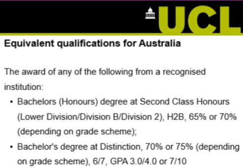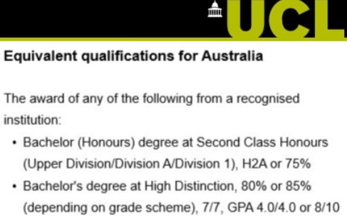 UCL硕士成绩:2:2学位; 澳洲本科成绩: