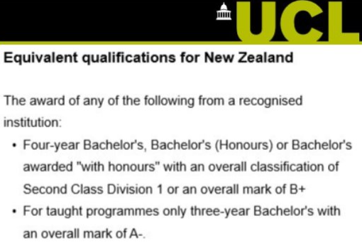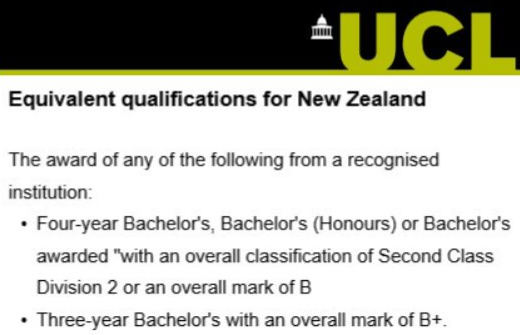 UCL硕士成绩:2:2学位; 新西兰本科成绩:
