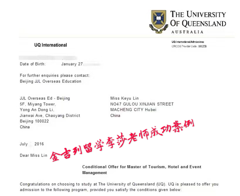 世界十大最美校园之一-昆士兰大学录取通知书: