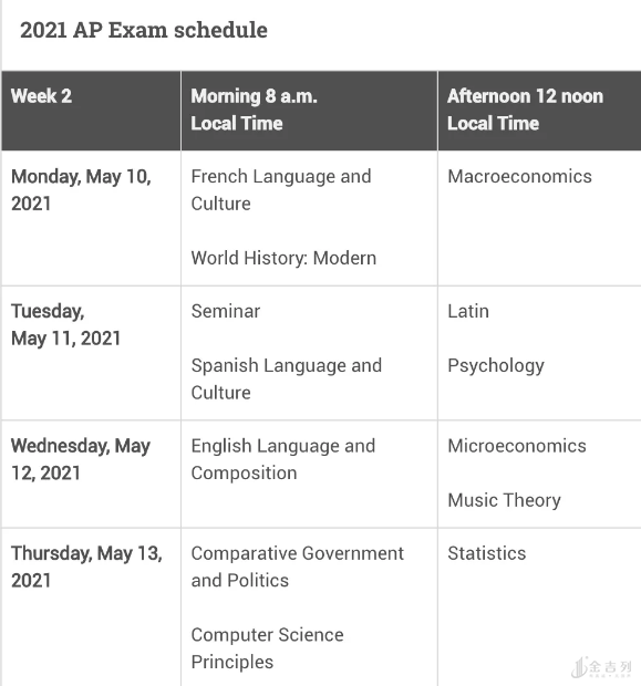 时间: 近日,collegeboar官网悄悄公布2021年AP考试时间——5月3日至7日和5月10日至14日。所以,计划在明年考的同学需要提前做好准备啦!