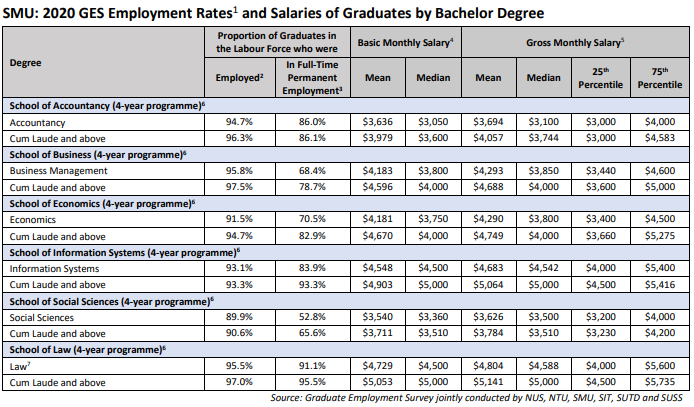 (* 2019年SMU的法律毕业生被排除在2019年的调查结果之外,因为他们在入学后的前六个月还在接受培训)
