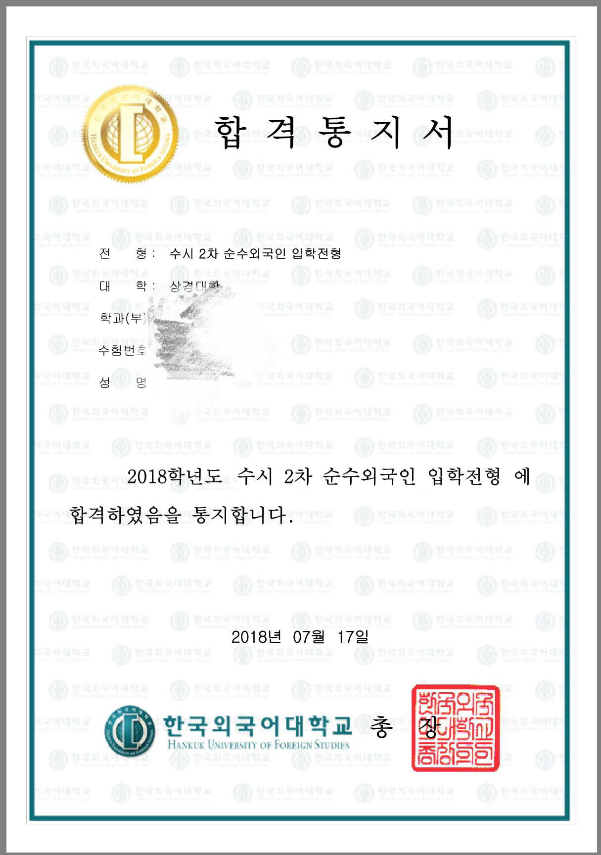 无其他成绩,成功帮学生申请到韩国外国语大学国际通商专业