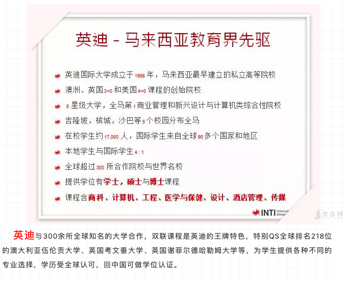 英迪的办学层次涵盖本科、硕士和博士,专业涉及商科、计算机、工程、医学、心理学、大众传媒、艺术设计等不同领域。目前在校人数约为17000多人,其中包括来自近100个国家的2000多名国际学生,是马来西亚规模最大的综合性私立大学之一。