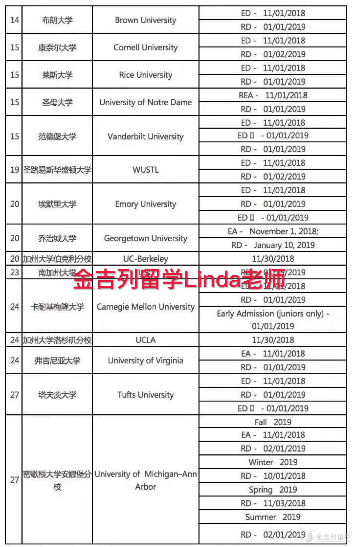 美国申请一般都是要提前一年提交申请,秋季申请每年八月份左右陆续开放申请一直到次年2月份左右陆续关闭申请,所以截止时间对于每个学生申请每所学校,尤其是名校至关重要。下面小编就给大家普及一下前60的申请截止时间。