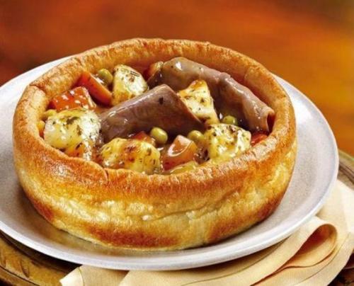 约克郡布丁( Yorkshire puing )是英国的一种食品。它是英国人周日晚餐的重要组成部分,多为烤牛肉的配菜,以它独特的牛肉香味闻名世界。“烤牛肉加约克郡布丁”甚至被称为英国的国菜。约克郡布丁并不是我们想象中的那种布丁,它更像是一种面包,口感也类似软面包,味道略带咸,呈咖啡杯的形状,中间凹陷及绵软,外围则香脆。由于约克郡布丁易于吸收肉汁,因此与烤牛肉以及牛肉浓汁( Gravy )一起食用,味道鲜美可口。