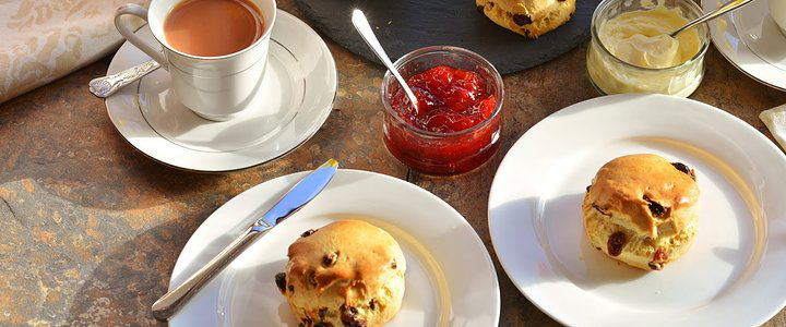 奶油茶是德文郡和康沃尔郡的传统食品,在英国的各类茶馆和咖啡店都有售。奶油茶通常由红茶、司康(烤饼)、草莓酱以及凝固的奶油组成。如果您在不同的地方品尝奶油茶,会注意到细节上略有不同。比如,在德文郡,习惯把草莓酱抹在热的司康上,然后再抹上奶油。而在康沃尔郡,一般则是先抹奶油。尽管传统的奶油茶是作为下午茶侍奉,但是只要你乐意,随时都可以去享用。