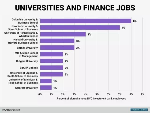 Emolument 调查显示, 那些在华尔街工作的精英中大部分人(至少在纽约工作的大部分人),在进入金融行业前曾就读于以下11所大学。