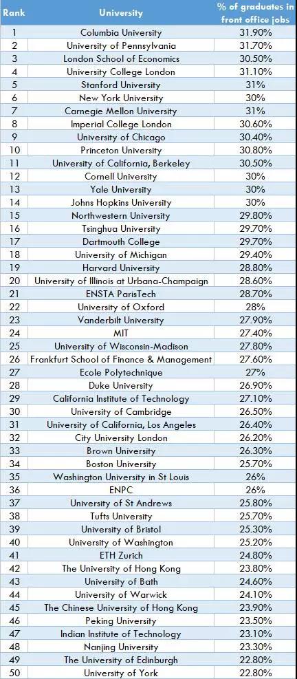 除了以下11所大学,根据数据显示还有另外1000个结果,但是所代表的华尔街金融专业人士所占比例不到1%。 让我们一起来看看这11所学校~