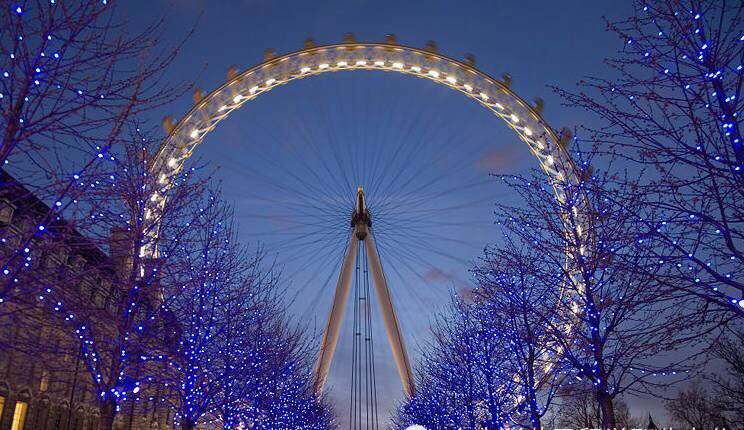 伦敦眼( The Lonon Eye),坐落在英国伦敦泰晤士河畔,是世界上首座、同时也是最大的观景摩天轮,为伦敦的地标及出名旅游观光点之一。伦敦眼于1999年年底开幕,当时赞助商还是英国航空公司因此又称千禧之轮,总高度135米。伦敦眼共有32个乘坐 位置 (由序号 1排列到33。因为宗教忌讳,没有13号),因舱内外用钢化玻璃打造,所以设有空调系统。每个乘坐 位置 可载客约 25名,回转速度约为每秒0.26米,即一圈需时30分钟。乘客可以乘坐&rquo;伦敦眼&rquo;升上半空,鸟瞰整个伦敦。