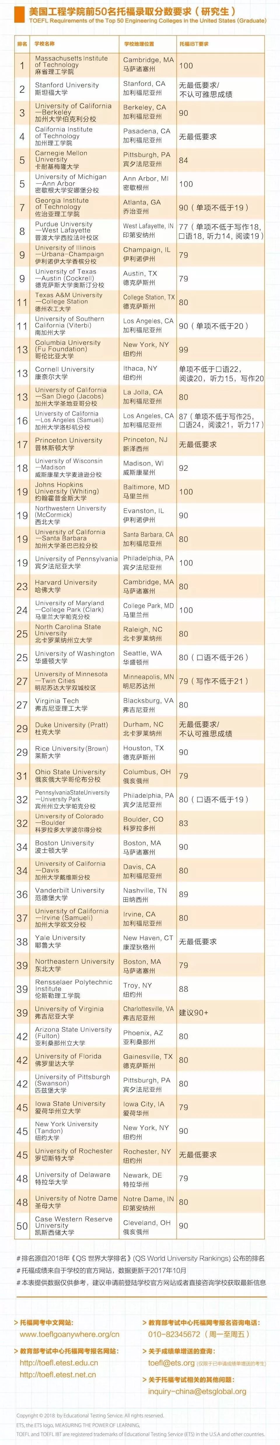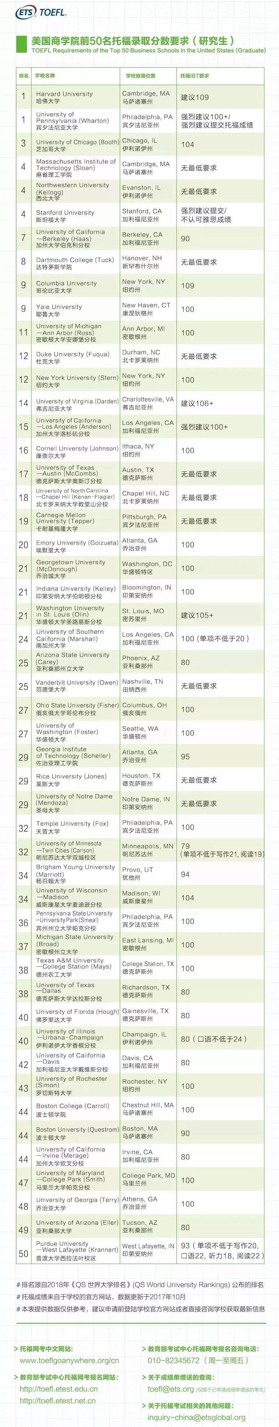 托福官方发布T50商学院和工程学院研究生要求 , 希望给予大家一些参考!