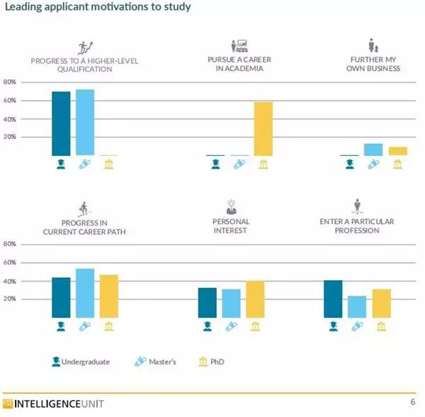 1、获取更高的学位;2、追求学术研究上的事业;3、拓展自己的事业;4、目前职业上的进步;5、个人爱好;6、进入特定的行业
