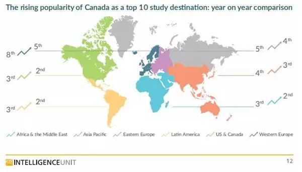 l 在来自非洲和中东的国际申请留学生人群中,加拿大取代英国成为第二名。