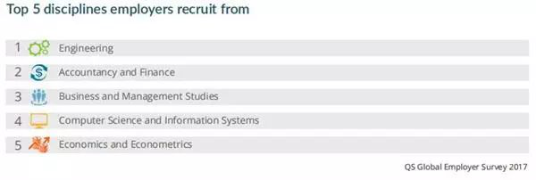 QS调查了全球各个国家大学后,总结出最热门的5大专业分别为: