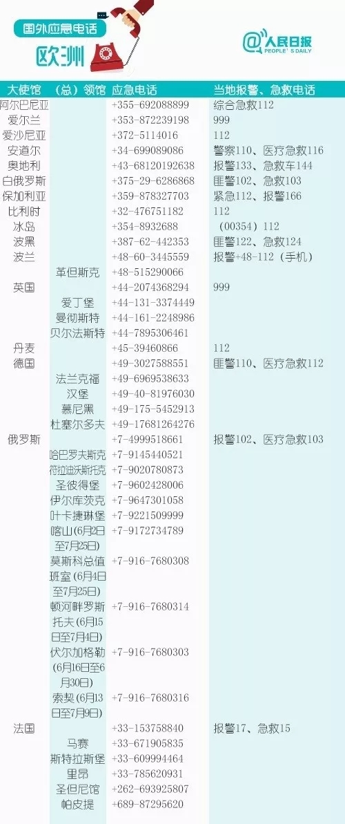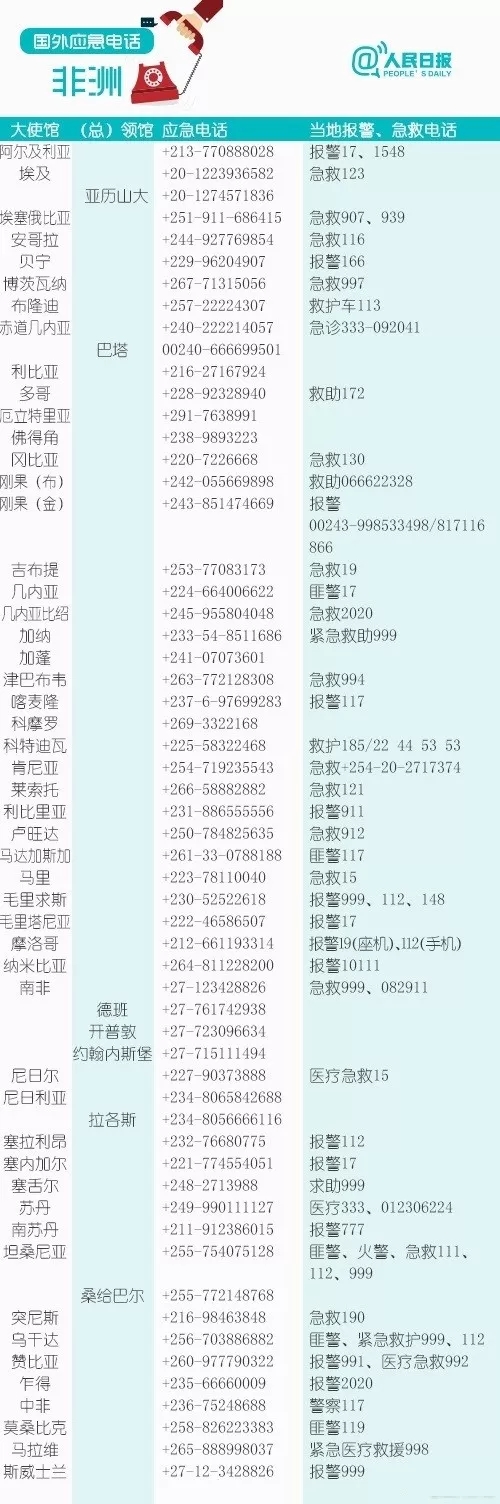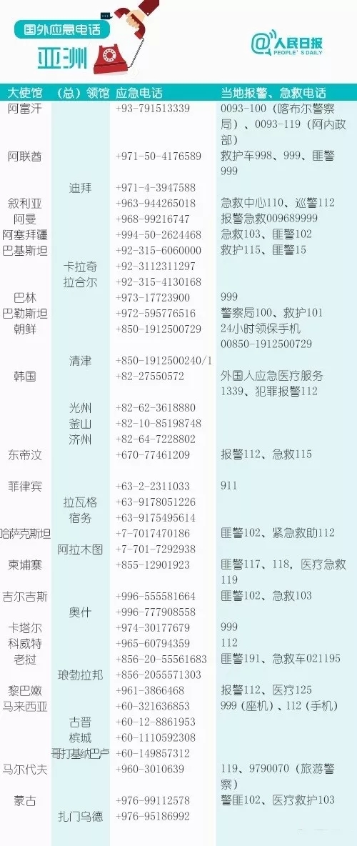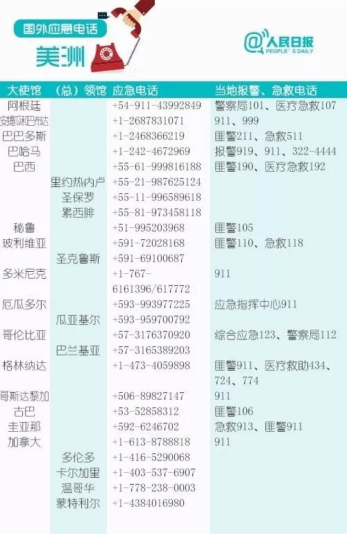 众多国家和地区应急电话要记住