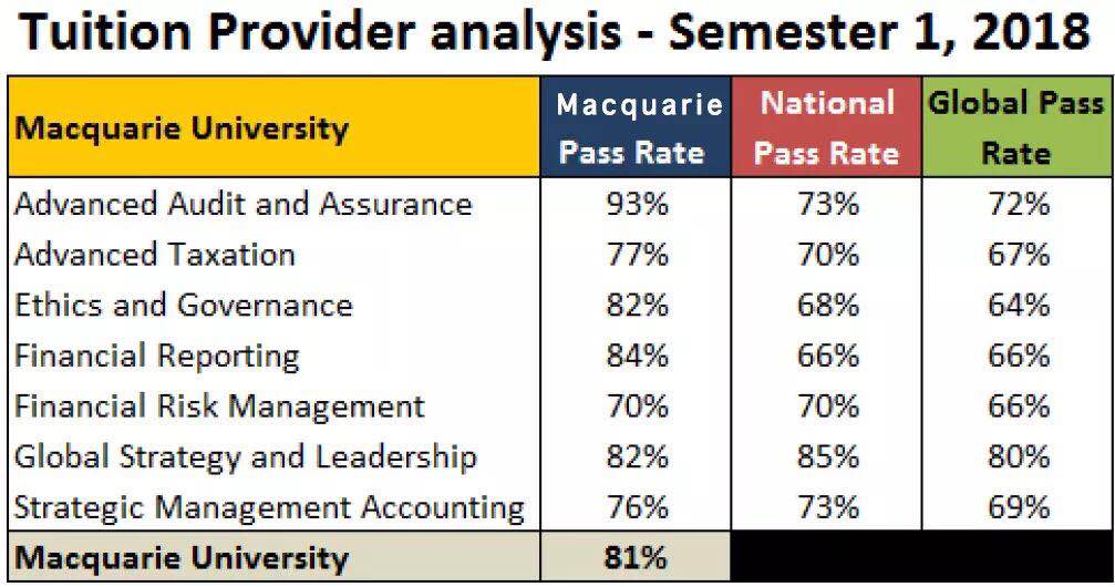 在刚刚结束的2018年 Semester 1 CPA Australia考试中,麦考瑞大学单科通过率70%-93%,远超64%-80%的世界平均水平。