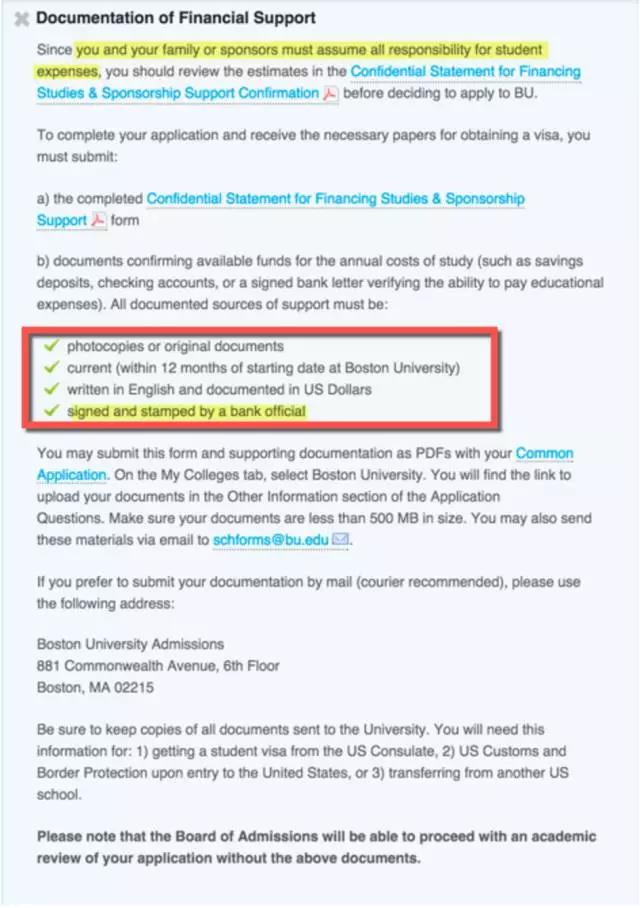 学生应确保自己熟悉每所学校的政策,并严格遵循这些政策以避免出现任何问题。下面是波士顿大学对国际学生的要求截图,供大家参考。