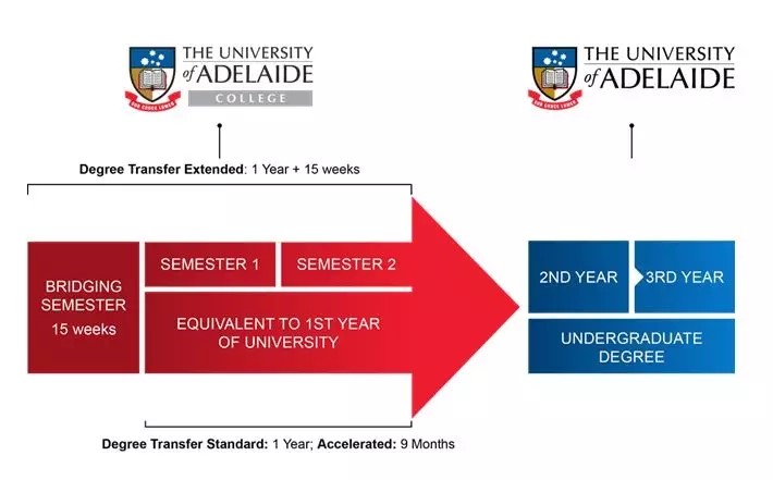 阿德莱德大学学院(阿德莱德大学)是阿德莱德大学的桥梁课程提供者,为学生提供进入阿德莱德大学深造的学习通道,学生完成学位转移课程( Degree Transfer )后可直升阿德莱德大学所选专业的本科二年级!