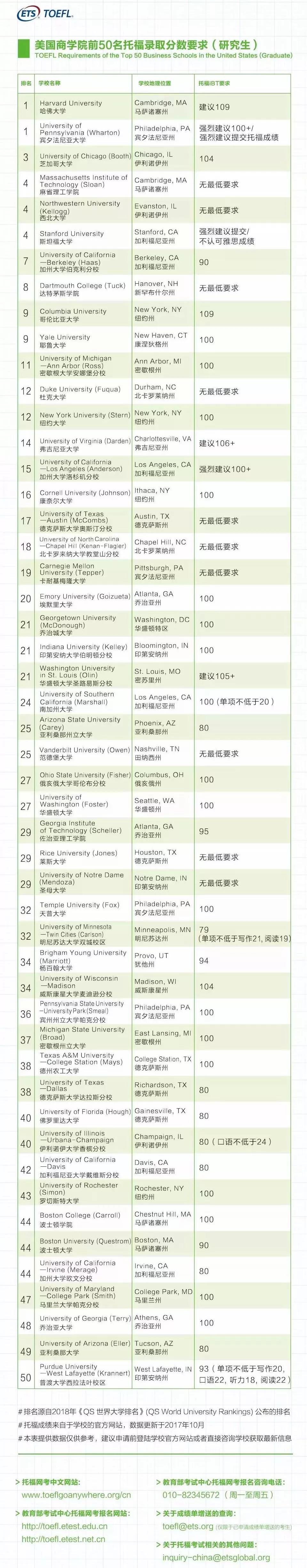 托福官方发布T50商学院和工程学院究生要求 ▼