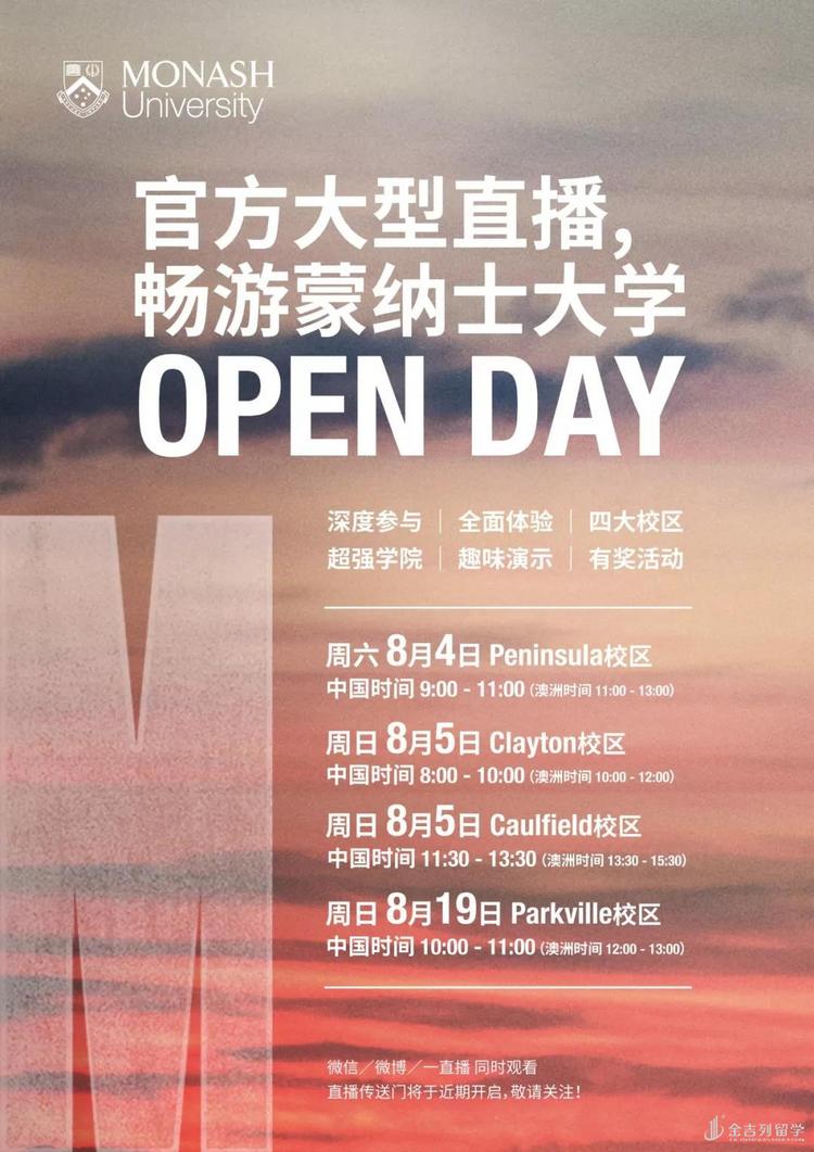 不久前蒙纳士大学首开校园直播,获得好评无数,连吃炸鸡的小哥哥也被大家记住了,看来这样接地气的互动方式很受欢迎。接下来, 蒙纳士大学一年一度盛大的OPEN DAY校园开放日即将开幕 ,届时,也 会以直播的方式与大家见面 。欢迎你的持续关注!
