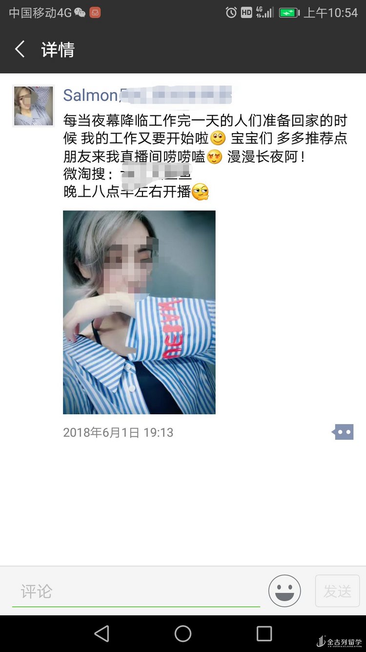 2017年灰溜溜的回到国内,从天堂跌落的她开始抽烟、酗酒、整容。开启了网红之路,每天浓妆艳抹,在签约的网络公司的要求下,每天8:00或者8:30直播到凌晨3:00,有时候是服装直播、有的时候是美食、有的适合是聊一些无聊的话题。。。。。。晚上工作,白天睡觉,这样的生活,持续了1年,实际上她并不开心,这并不是她想要的生活,看到姐姐和孩子在澳洲的生活,姐姐已经走出了离婚的阴霾,她也想改变。