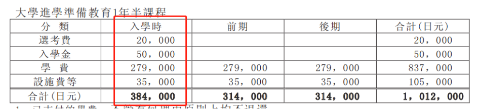 这是一所可以半年交学费、并且只读半年成功升学学校也可以交学费的学校学费列表。前期半年的费用就是38.4万日元,相当于才2万3千多人民币,真的是非常非常非常划算了。
