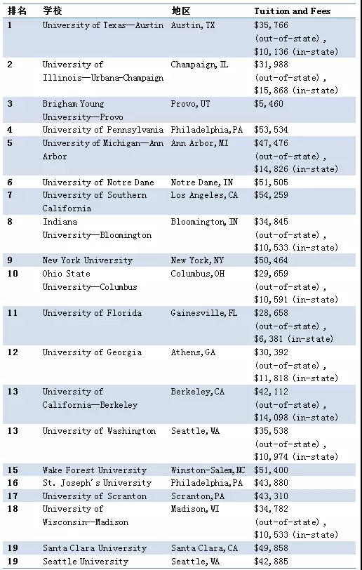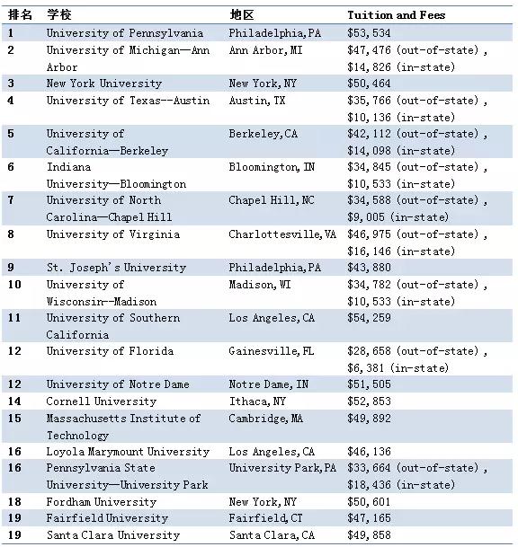 2018年USNews美国最佳本科管理学