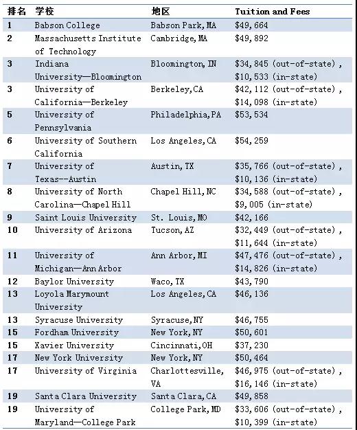 2018年USNews美国最佳本科创业学