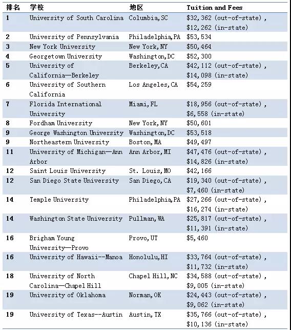 2018年USNews美国最佳本科国际商务
